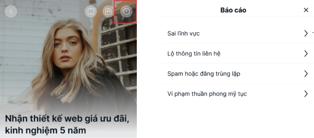 Tương tự cách hoạt động của tính năng Báo Cáo trên nhiều ứng dụng, người lao động có thể báo cáo những tin đăng tuyển dụng vi phạm chính sách nền tảng hoặc quy định pháp luật nhằm tạo ra môi trường việc làm an toàn, minh bạch cho cộng đồng.